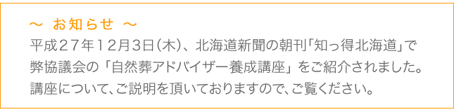 自然葬の魅力、歴史や背景といった知識や、自然葬をアドバイスすることに関する知識と技能を身に付けることを目的とした資格です。
