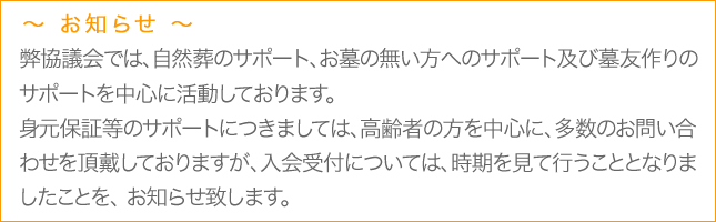 「自分の最後は、自然に還りたい」という想いや希望がある方、ご相談は当委員会までお寄せください。